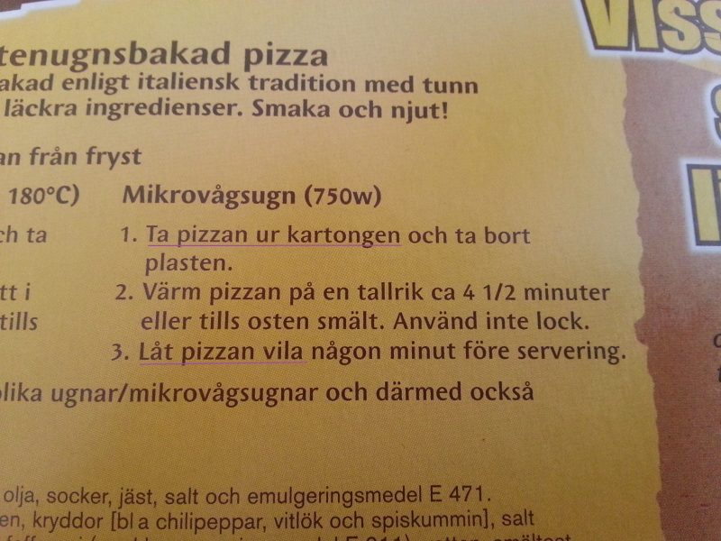 Och steg nummer två behöver vi knappt tala om. Sen när behöver en pizza vila? Har den inte gjort det tillräckligt i affären eller? ^^