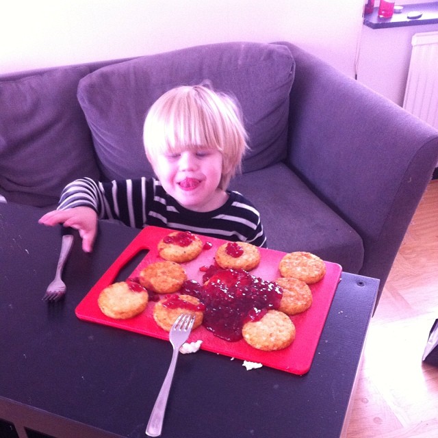 1. Vad kul för Thim ska få eget rum. Bra att använda det man har till hands som tallrik när man har flyttat och inte fått fram allt ännu. När är det din syster ska få andra barnet? Jag önskar grattis till henne och grattis till Thim ska bli storebror. Kram