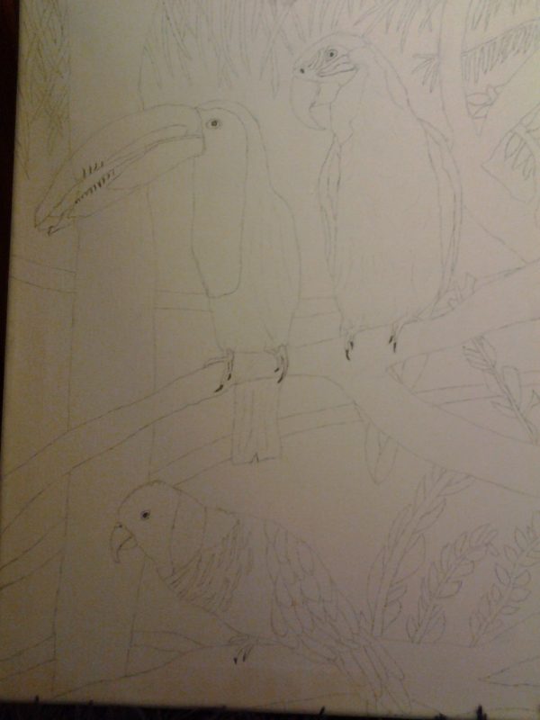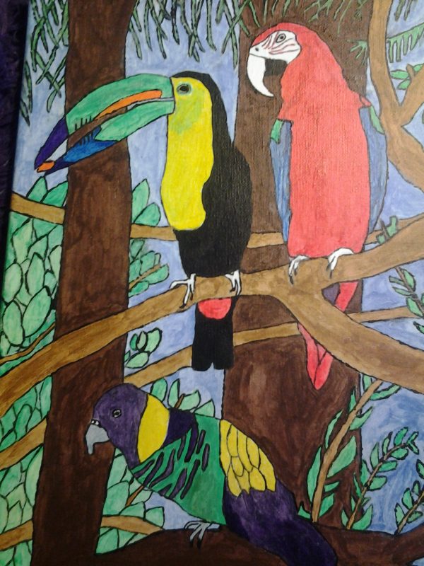 • Om jag ska måla något utan att titta på en annan bild så går det bara göra enkla saker, som kaniner, katter och hundar. Papegojors exakta utseende har jag inte riktigt i huvudet, så jag målade av bilder från Google 🙂
