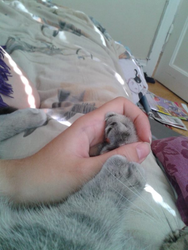 Mina katter brukar ”fälla in sina klor” i min hud och mina kläder när vi myser ^^