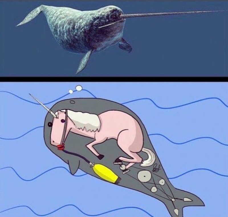 Fin teckning och kul tanke att det är där som enhörningarna gömmer sig när forskare letar efter bevis på om dom finns…