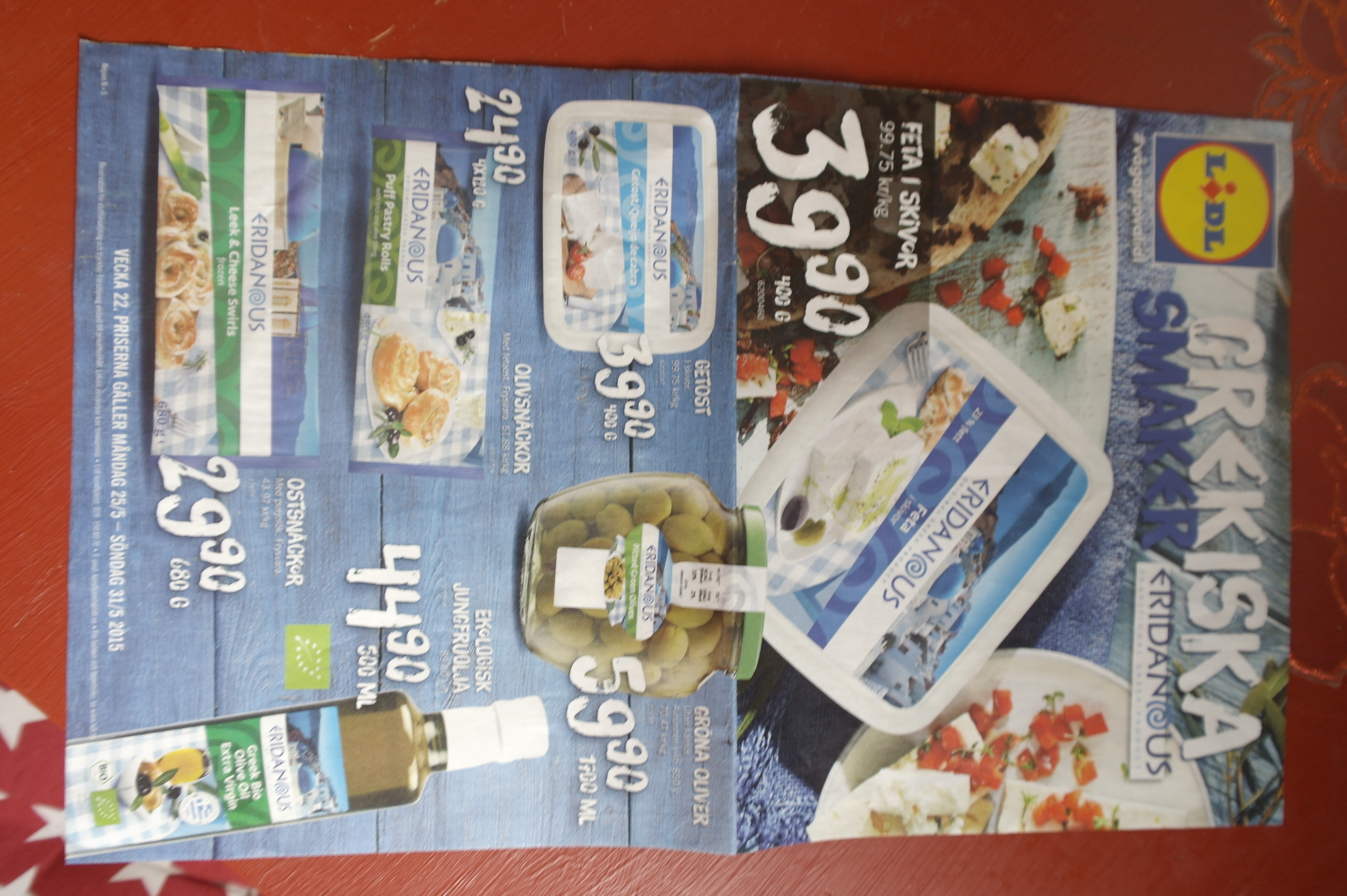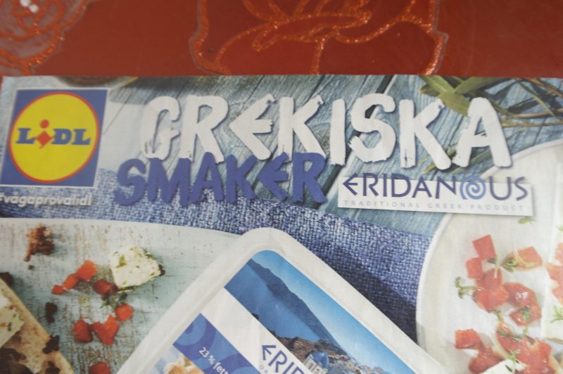 När vi kom hem från Santorini så blev vi väl omhändertagna om Lidl, som passande nog hade en grekisk vecka och sålde en massa grekisk mat. Både överdrivet och lite småkul. Att varorna dessutom hade etiketter med Santorinis huvudstad Fira på, som vi var ett antal gånger i är ett ännu större sammanträffande.