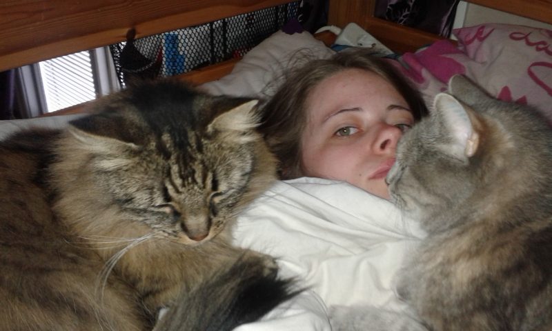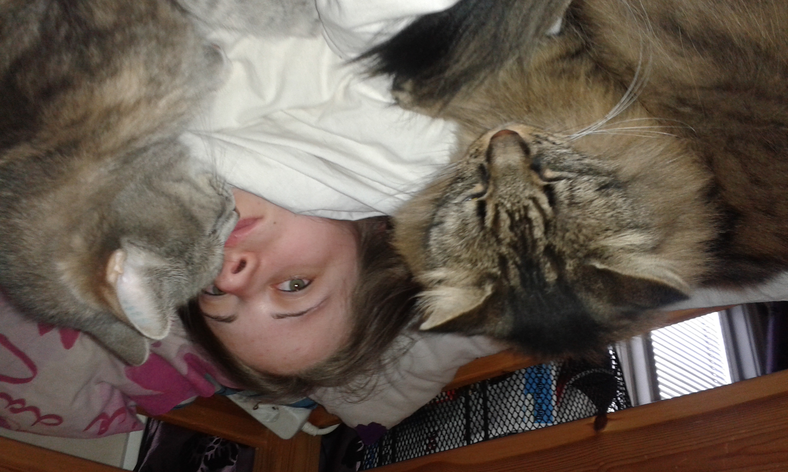Mysigt! Borde man kanske fota själv? Men Tindra har inte sovit hos mig under ganska lång tid nu. Kalle brukar inte ligga så nära mitt huvud om jag inte drar upp honom. Jag har funderat på att ställa in en av mina övervakningskameror som kan se i mörkret och ta timelapsfilmer på hur katterna rör sig fram och tillbaka från min säng när jag sover. Det kan vara så att Tindra sover hos mig kortare stunder utan att jag registrerar det. Kalle är så stor att jag brukar veta i vilken omfattning han sovit hos mig under natten.