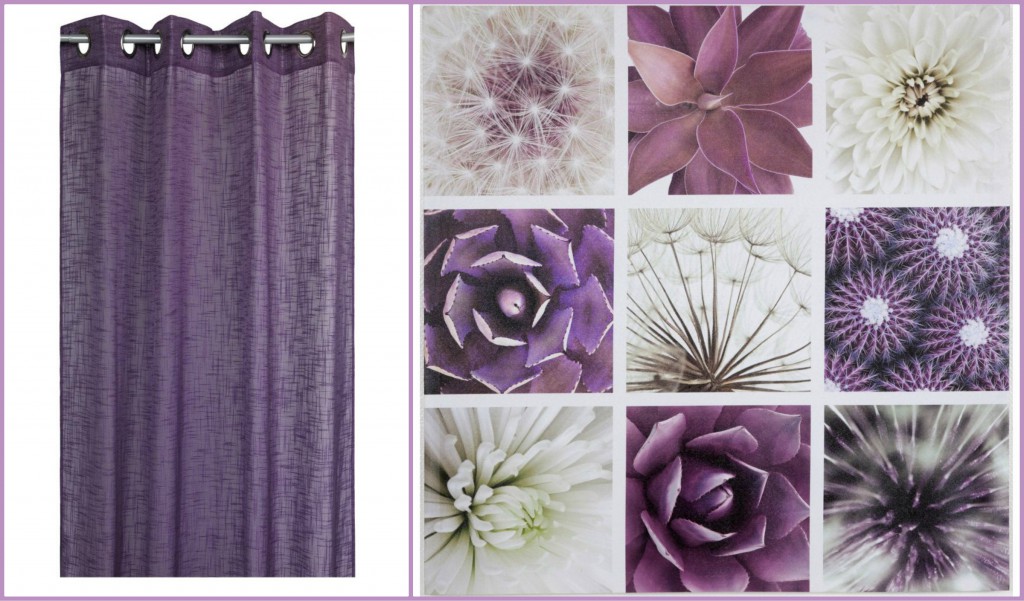 Och nu till rummets övriga detaljer. En gardin i lila är ett måste och då syftar jag på en gardin i ungefär samma färg som soffan, vilken jag hittade på hemsidan. Och som komplement till den, en fräck tavla. Alla dessa lila detaljer och möbler kommer göra sig bra ihop och forma sig till ett superfint vardagsrum som hade passat mig perfekt.