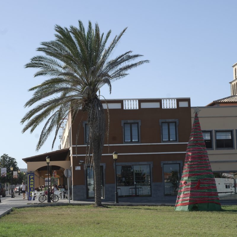 I Corralejo hade de ett tappert försök till julgran uppställt i stan.