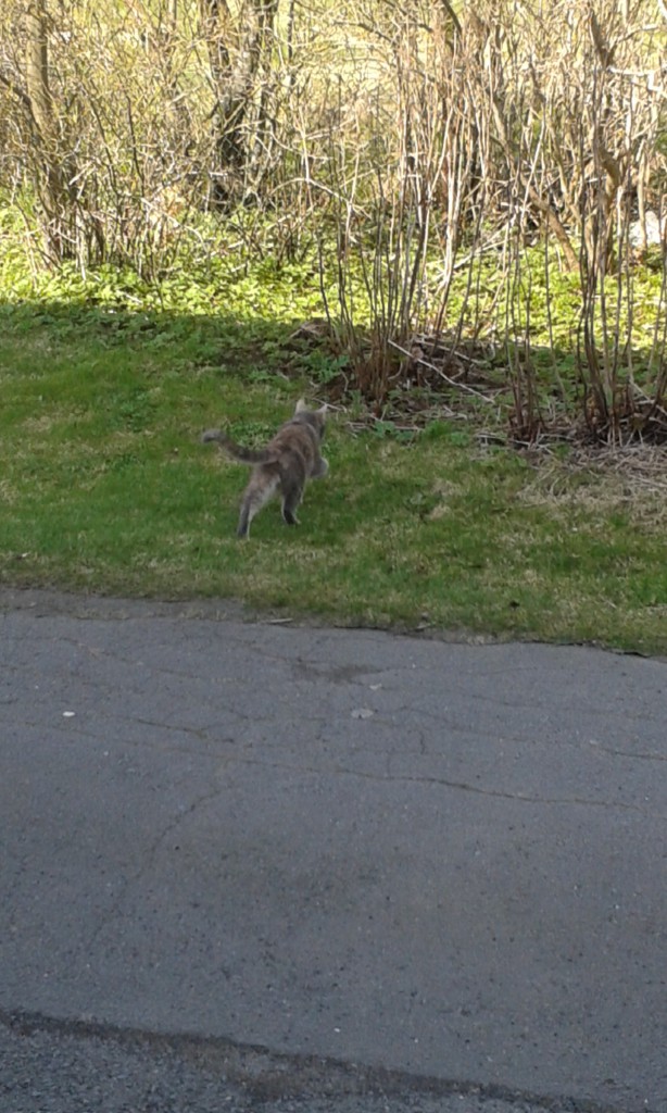 1. Verkar kul för henne! Får planer på att göra nya försök att lära mina katter att uppskatta att vara utomhus varje vår. Åtminstone Kalle som borde röra på sig mer. Vi får se hur det blir denna sommar. Måste isf. börja vaccinera dem igen. Vågar inte chansa utan. Sen måste man nog avmaska varje höst också för säkerhets skull. Kolla fästingar kanske också är bra idé.