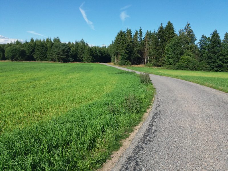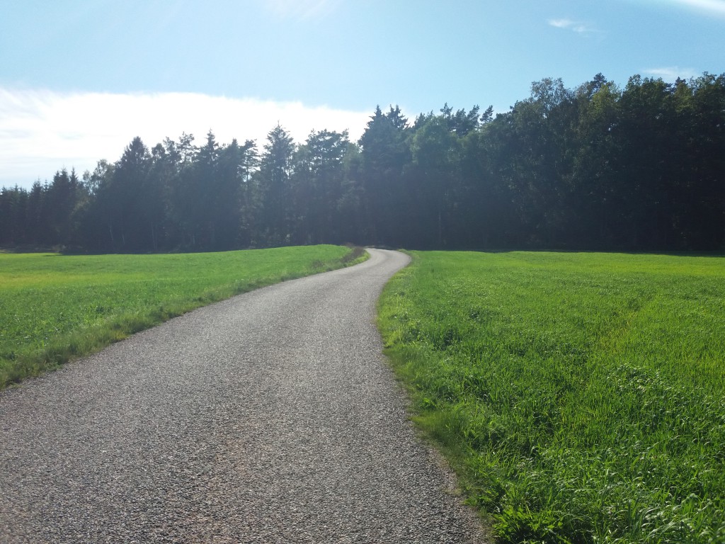 Här hemma finns det lite hallon och vinbär i trädgården, men ska man plocka mer bär måste man gå en bit för att komma till skogen. Gillade att ha skogen så nära som jag hade och hittade massa avlägsna ställen som jag hade kunnat tänka mig att sitta och skriva på. Älskade lugnet och saknar det.