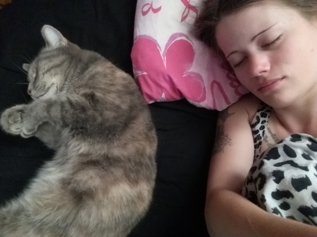 Är det inte nära nog? Kalle pressar in mig mot väggen så att jag tvingats ligga på höger axel så mycket att jag fått ont i den. Ibland ligger han vid fötterna vilket egentligen är bättre.
