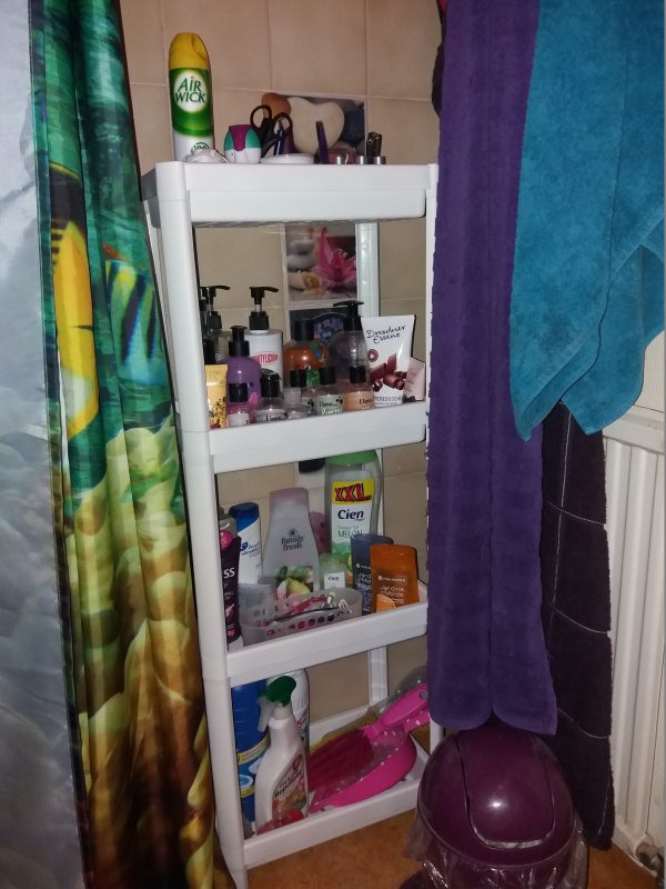 För ett tag sedan köpte jag ett riktigt bra fynd på IKEA, en lagom stor badrumshylla för bara 99 kronor! Det känns så lyxigt att kunna ha alla flaskor och grejer på en hylla eftersom jag har det så trångt.